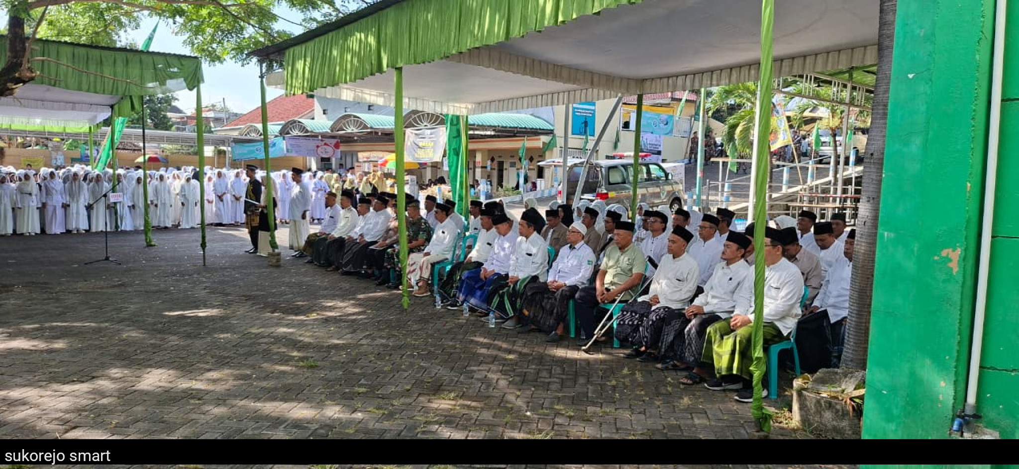 di tengah kibaran bendera merah putih dan panji pesantren. Para santri berdiri